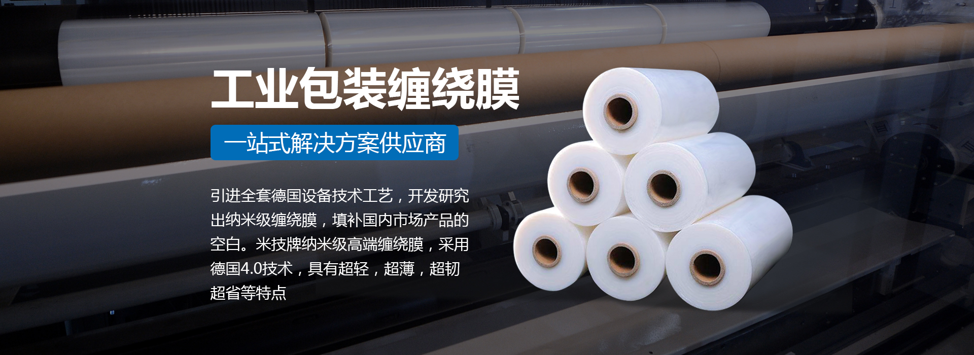 引進(jìn)全套德國設(shè)備技術(shù)工藝,開發(fā)研究出納米級纏繞膜,填補(bǔ)國內(nèi)市場產(chǎn)品的空白。米技牌納米級高端纏繞膜,采用德國4.0技術(shù),具有超輕,超薄,超韌,超省等特點(diǎn)。
